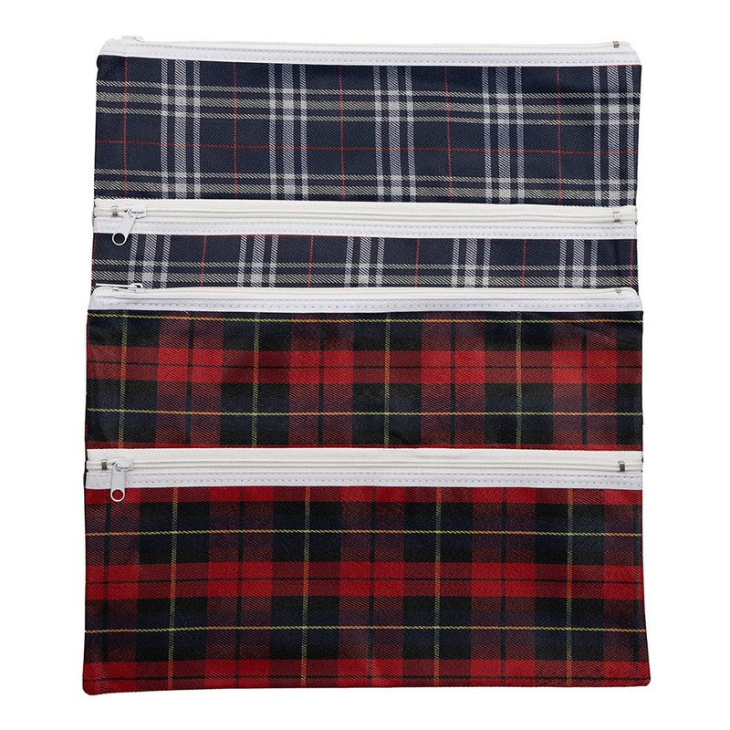 8574SXWWPENCIL CASE GNS 38X27CM 2 ZIP TARTAN ASSORTED G82448