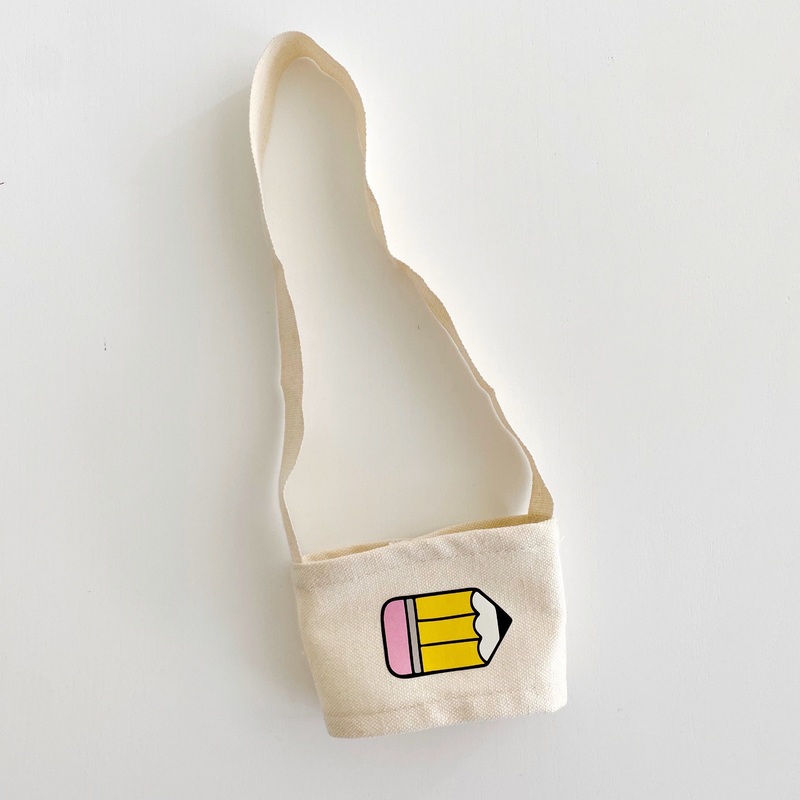 Keep your hands free while on the go with this cute pencil drink carrier! Holds most 8oz, 12oz + 16oz hot or cold to-go cups. Details: One coffee cup holder Canvas 3" x 4" 8" handle Designed in Austin, Texas. Love stationery, do good.A portion of sales fro