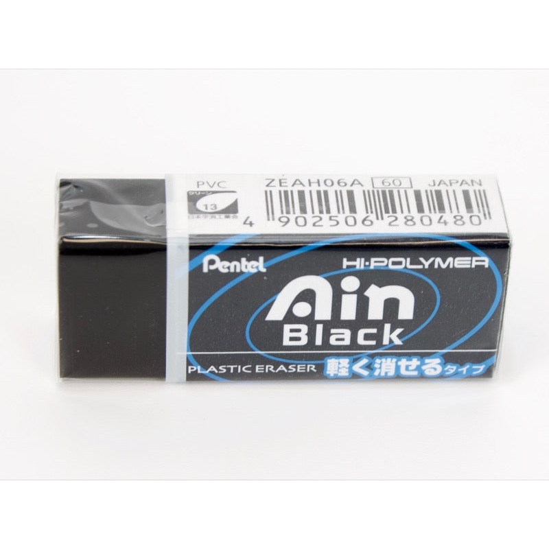 Pentel Ain Black Hi-Polymer eraser is made especially for effectively erasing while creating less eraser 'dust.'43mm x 18mm x 13mm