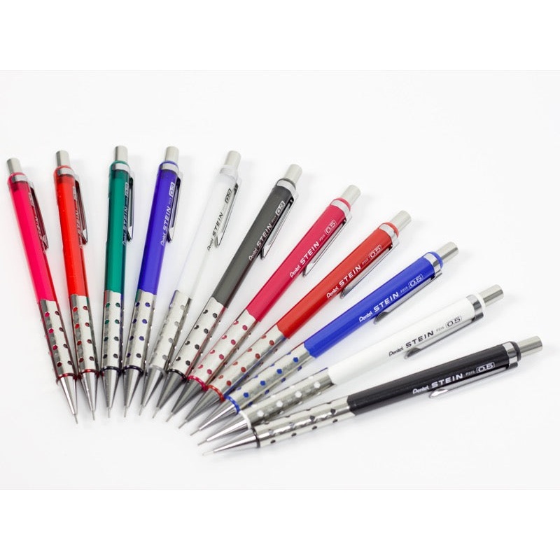 The Pentel Ain Stein Mechanical Pencil has a unique metal grip, which is made up of a combination of hole-punched and knurled circles. Available in both .3mm and .5mm and your choice of barrel color.Please note: Some colors may no longer be available.Refil
