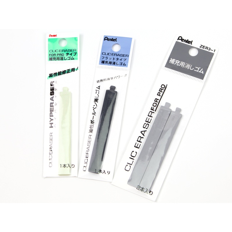 Refills for the Pentel Clic EraserAvailable in Pro for Mechanical Pencil, Sand for Ballpoint Pen, and Hyper for Printed Material and Ballpoint PenEraser thickness 3mmPro Refill includes 2 refills, Sand and Hyper include 1 refill