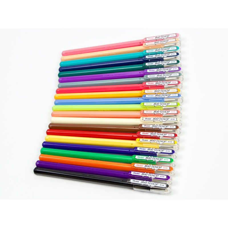 The Pentel Mattehop is a bold, matte, super-pigmented ink pen with a 1.0 mm ball tip. The colors in this line are highly pigmented, and they look great on colored paper, photographs, and even masking tape! We like them for marking maps. There are 14 colors to choose from. These colorful pens take inspiration from comic book pop art, like pioneer artist Roy Lichtenstein in the 1960’s! Compared to regular pigment ballpoint pens, they uselarger pigments (color particles) to create matte handwriting with no gloss.