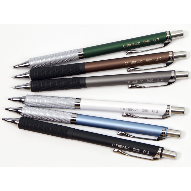 The Pentel Orenz features an innovative pipe tip that protects your lead as you write. You start writing without the lead protruding, and the pencil feeds your lead as necessary. This protects your super fine lead from breakage, and enables you to write wi