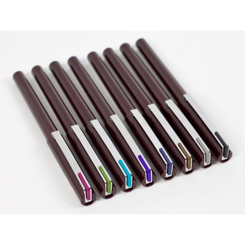 The Pentel PuraMan was designed for users who like the 'fountain pen feel,' but also enjoy the convenience of a typical water-type pen. The tip of the Tradio is very unique, if you look closely you will see this plastic tip is shaped like an arrow. The pen