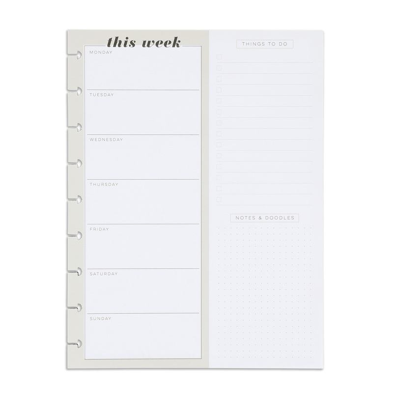 Write it down and start planning! This Classic size filler paper features daily sections, bullet list, grid area, and a lined back. It features neutral colors that will match with any planner. Add these into your Classic size Happy Planner using the disc b