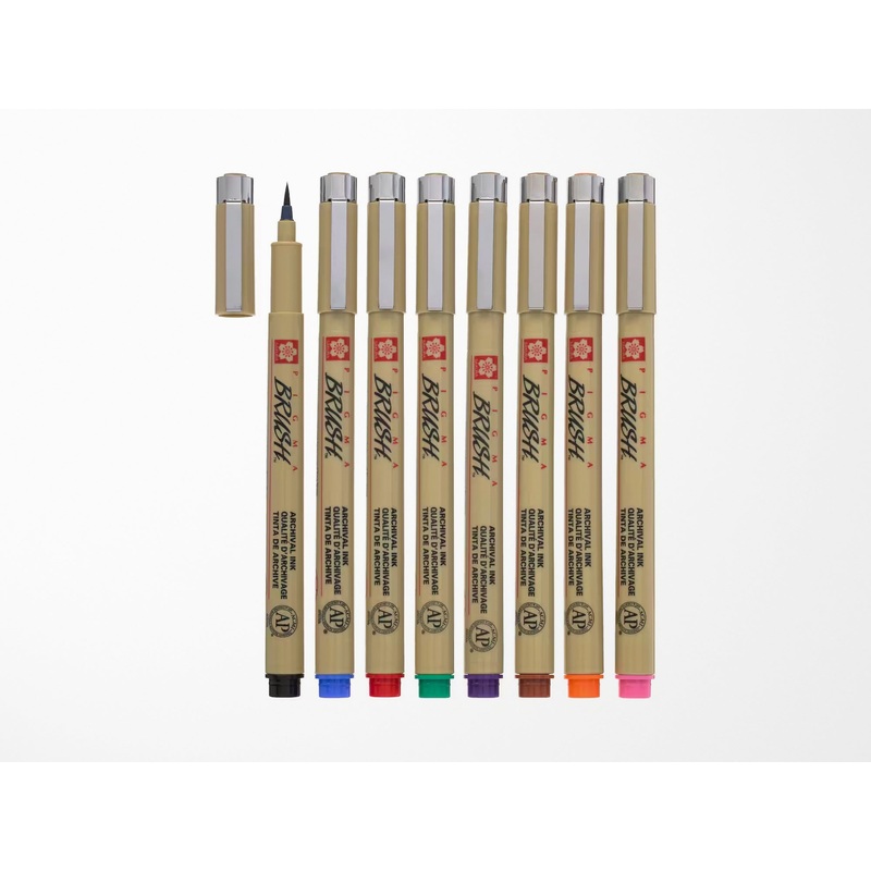 Create bold and colorful art with these Sakura Pigma Brush Pens. Each of these pens has a flexible brush tip, which lets you write like a pen and paint like a brush. Perfect for archival-quality job, these pens use fade-resistant Pigma ink, which resists s
