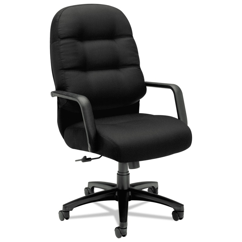 PILLOW-SOFT 2090 SERIES EXECUTIVE HIGH-BACK SWIVEL/TILT CHAIR, SUPPORTS UP TO 300 LBS., BLACK SEAT/BLACK BACK, BLACK BASE