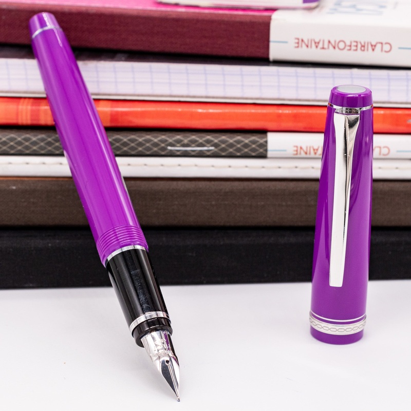 The Pilot Namiki Falcon fountain pen comes with a resin barrel and a rhodium-plated clip and trim. The Falcon comes with a responsive 14K gold flexible fountain pen nib that allows you to create varied thicknesses based on the pressure of your strokes.