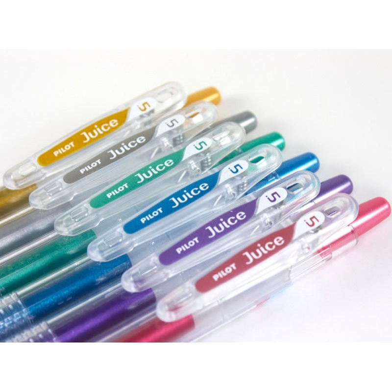 The Pilot Juice is now available in Metallics!The Pilot Juice Metallics stand out beautifully on both light and dark pages. We especially love to use them for addressing dark colored envelopes. Metallics available in .5 mm tip size.Available in your choice