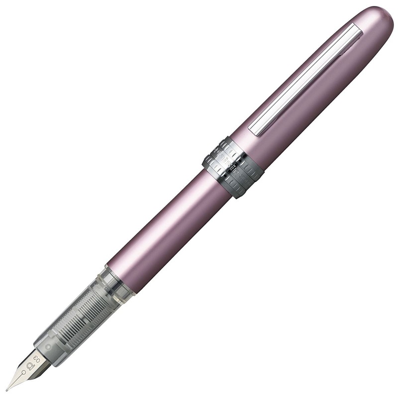 Platinum - Plaisir Fountain Pen is a fun and stylish fountain pen designed in a variety of colours to suit any mood. Pink colour Transparent grip so you can see the nib feed. Anodised aluminium body making it tough with a vibrant shine Fine nib writes a 0.