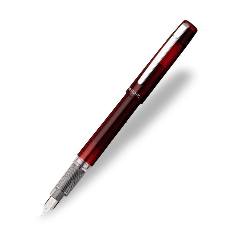 About Platinum Prefounte Fountain Pen -Crimson Red The Platinum Prefounte fountain penhas simple lines from a design inspired by sophisticated urban images.The Prefounte fountain penhas a translucent cap and barrel, a hi-tech feed system to ensure reliable