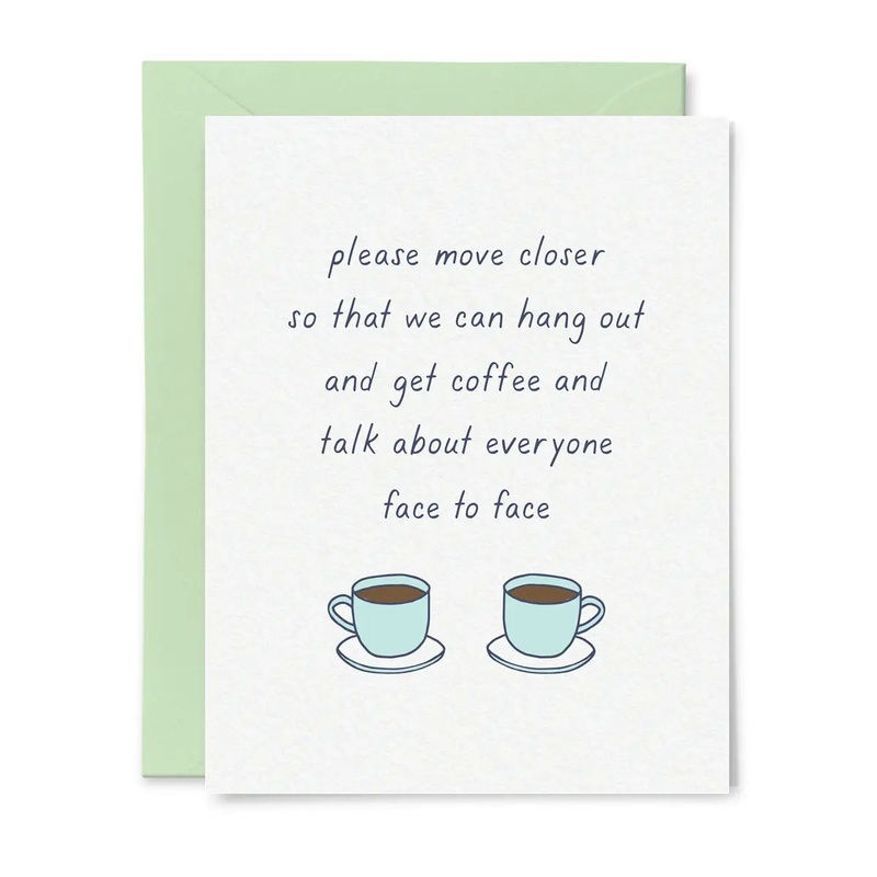 In an ideal world, all good friends would live within walking distance so that we can see each other and talk shit in person... Size:A2, 4 1/4" x 5 1/2"Blank inside for your personal messageFlat printed110lb felted paperEnvelope included