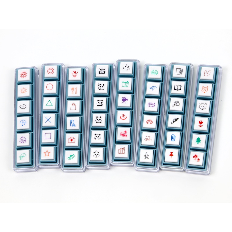 Kodomo no Kao pre inking stamps in a perfect, small agenda / schedule size featuring themes that are perfect for planning! These push button stamps have been redesigned recently to include the ability to remove the stamps from the outer frame for better ea