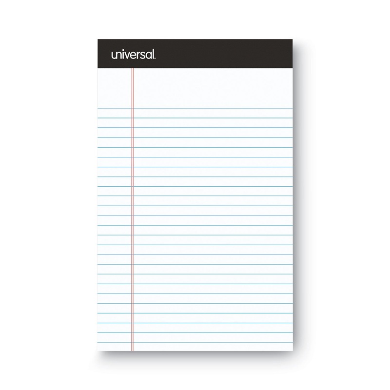 Heavyweight bright white paper with red margin rule is perforated for easy removal. Tasteful black head strip provides a professional appearance. Sturdy heavy-duty back offers support while writing away from a desk. Black Headband Strip. Pocket-Sized Indic