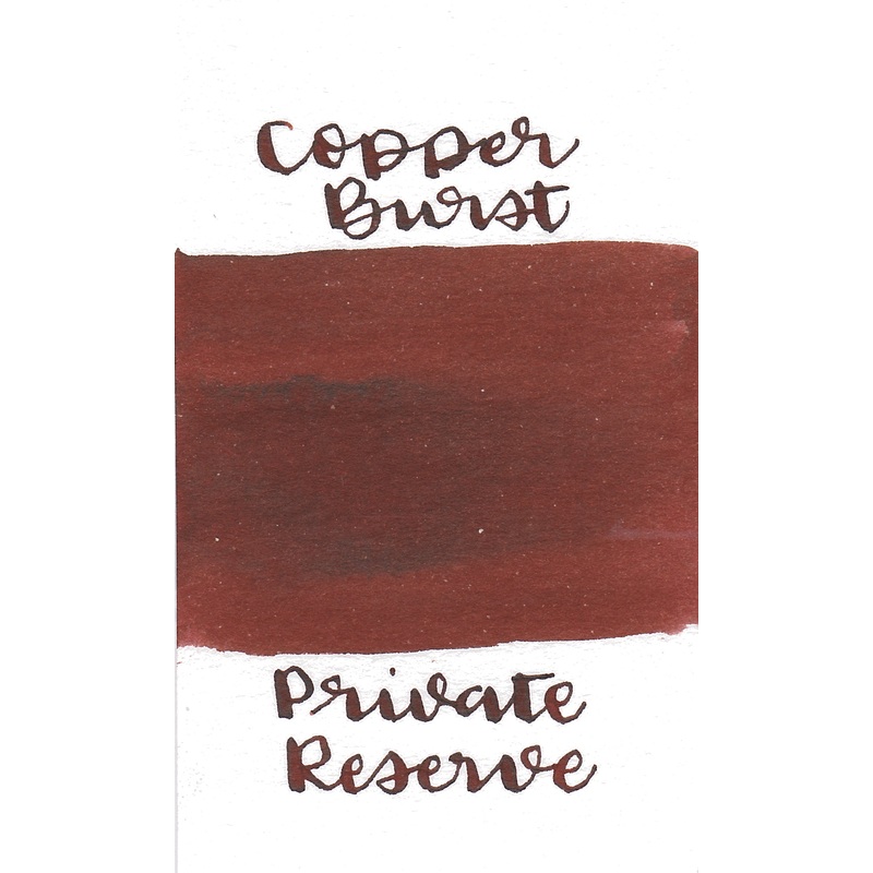 Private Reserve Copper Burst from the standard collection is a deep red-brown ink with low shading. It dries in 30 seconds in a medium nib on Rhodia and has an average flow. Private Reserve ink is made in the United States.Original FormulaPremium QualityRa