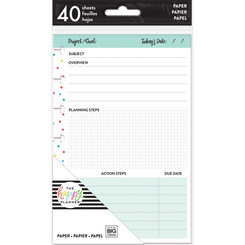 Have a project coming up? Are you working on some of your goals? This pack of filler paper is just for you!Each package includes:40sheets of pre-punched, double sided project/goalpaperFour colors includedDimensions: 4.625" x 7"Customize your MiniHappy Plan