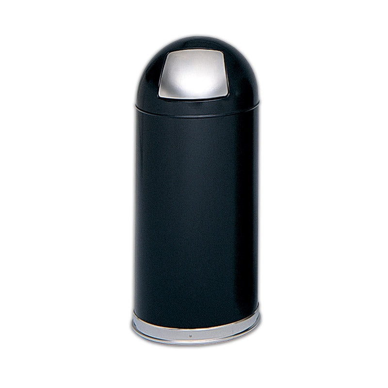 FeaturesDome top receptacle with push door15 gallon capacitySpring-loaded, self-closing stainless steel doorDurable, easy-to-clean powder-coated finishWide stainless steel bottom edgeGalvanized steel liner includedAvailable in black, tan, or whiteDetailsTh
