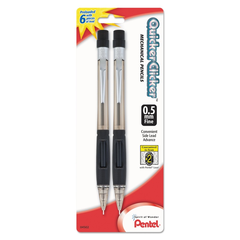 QUICKER CLICKER MECHANICAL PENCIL, 0.5 MM, HB (#2.5), BLACK LEAD, SMOKE BARREL, 2/PACK