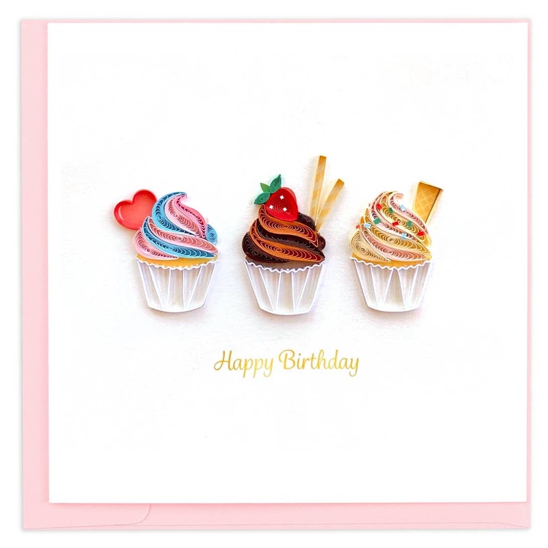 Share some sweet treats with a friend! The handcrafted trio of cupcakes will delight all taste buds with colorful frosting and candy decorations this happy birthday this sweet treat will hit the right spot. This card is a beautiful keepsake and perfect for