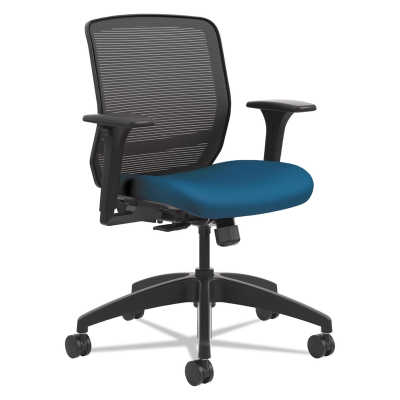 QUOTIENT SERIES MESH MID-BACK TASK CHAIR, SUPPORTS UP TO 300 LBS., PEACOCK SEAT/BLACK BACK, BLACK BASE