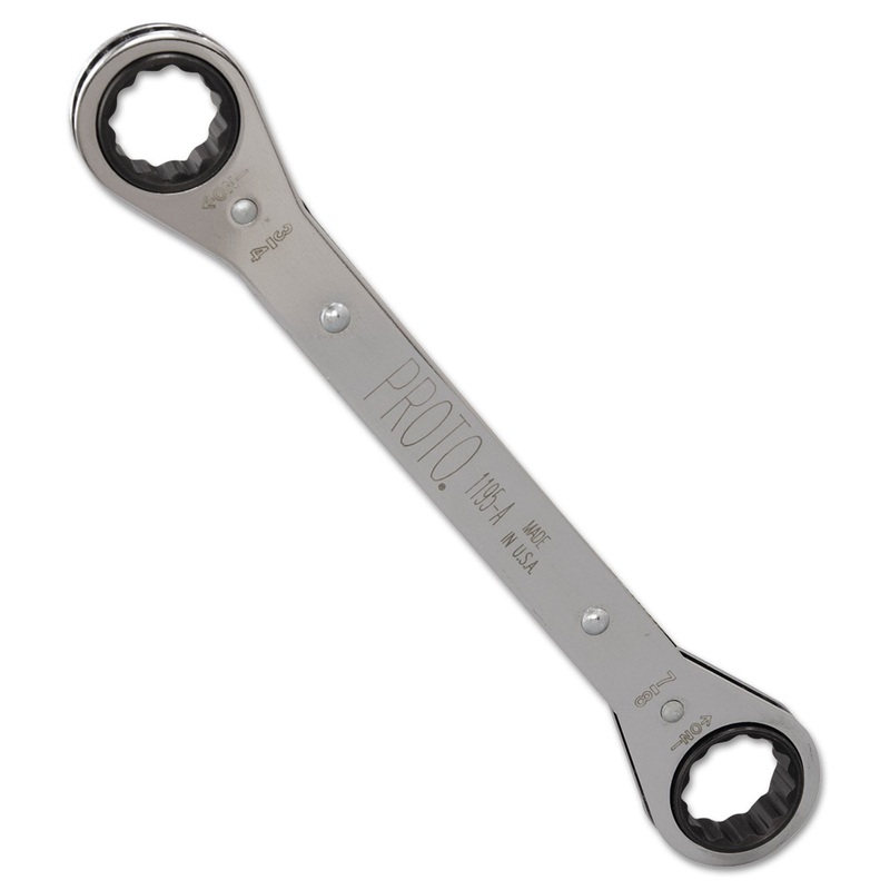 Simplify fastener-attachment jobs with a dual-end, dual-size ratcheting-box wrench. Smooth-action mechanism provides professional-grade performance. Size-stamped.