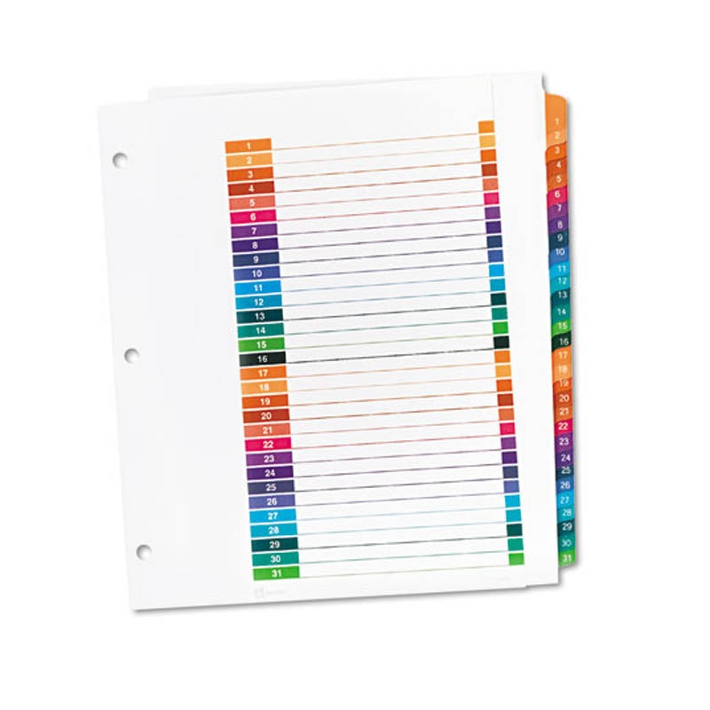 FeaturesIncludes 31 dividers with Table of Contents page per set.The printable Table of Contents coordinates with preprinted tab titles.Now three ways stronger to last longer.Stronger heavier weight paper.Stronger tab reinforcements.Double-sided hole reinf