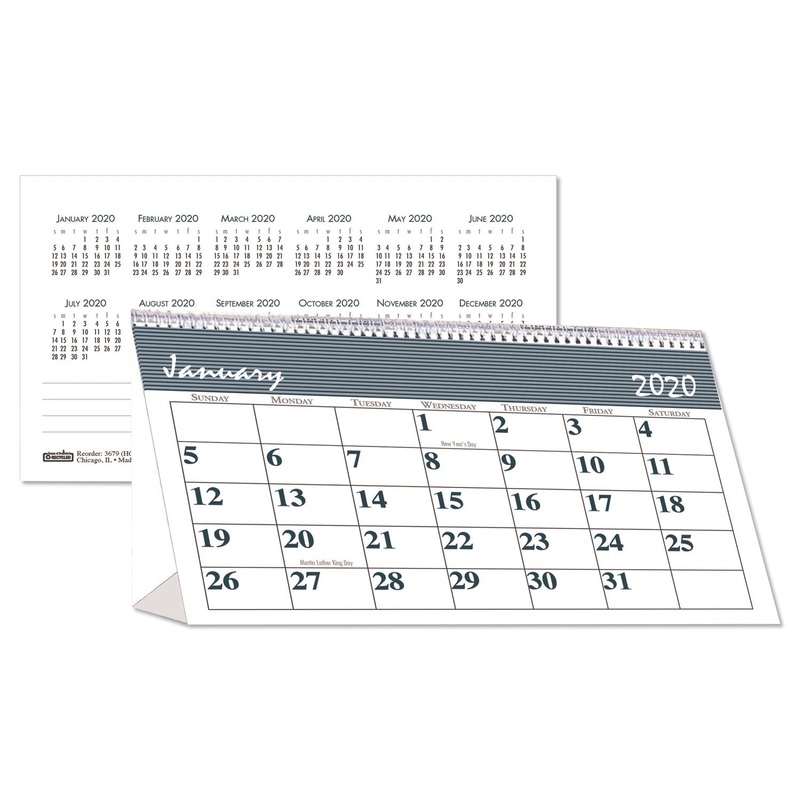 Stand-alone monthly desk-top tent calendar is perfect where desk-space is limited. Full-year reference calendar on the back side of each page. Spiral-bound at the top, just flip to view other months. Bar Harbor neutral graphics match any dcor. Made entirel