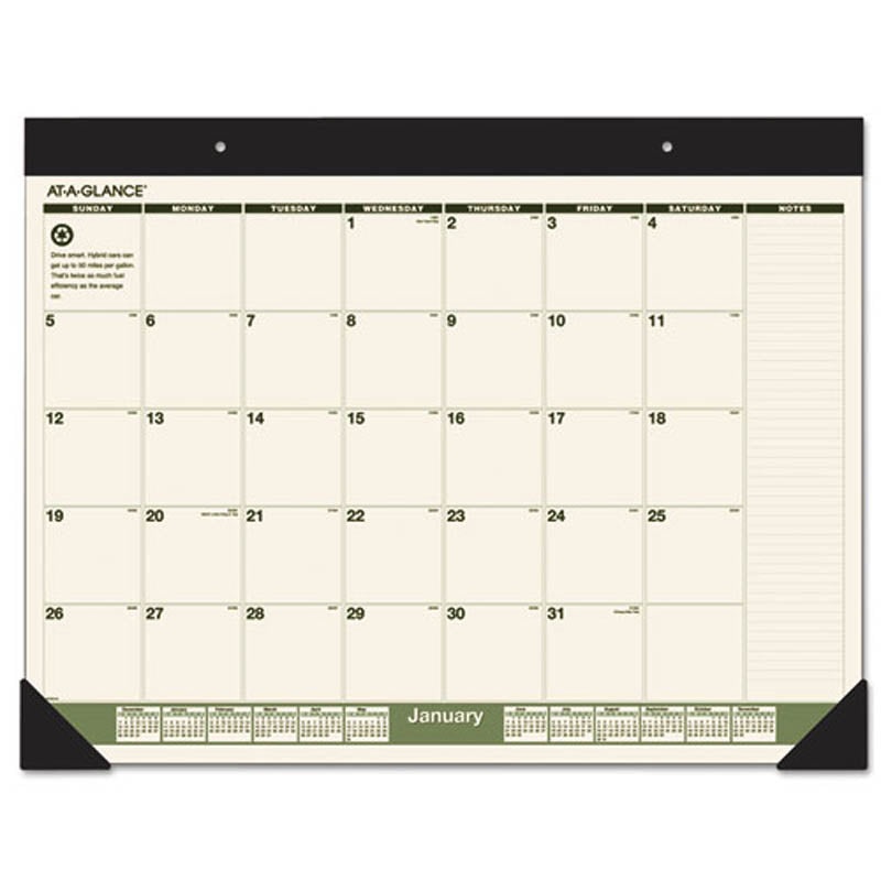 Use products with high post-consumer recycled materials content. Durable backboard for sturdy writing surface. Includes bonus page with notes and future planning. Features tips for “green living” each month. One month per page with unruled blocks and lined notes space. Full-year calendar reference. Black, wide paper headband with eyelets.