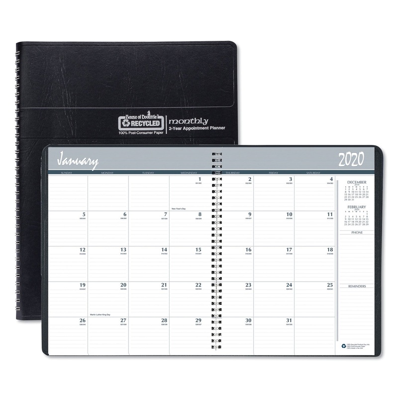 RECYCLED RULED MONTHLY PLANNER, 14-MONTH DEC.-JAN., 8 3/4 X 6 7/8, BLACK, 2019-2021