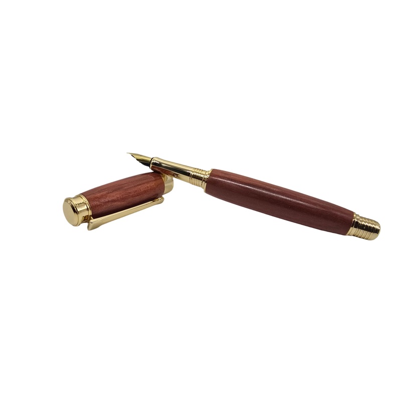 Fountain pen handmade in red Heart wood complemented with gold coloured metal fittings.