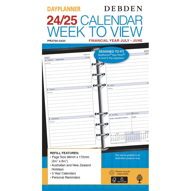 REFILL DAYPLANNER FINANCIAL YEAR 24-25 172X96 PR2760 WEEKLY DATED 1 G85639