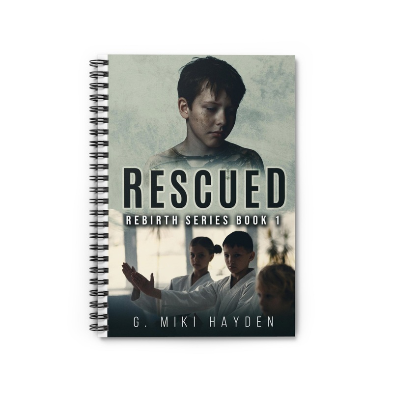 Shopping lists, school notes or poems - this 118 page spiral notebook with ruled line paper is a perfect companion in everyday life. The cover art in this spiral notebook is from G. Miki Hayden's book, Rescued.
