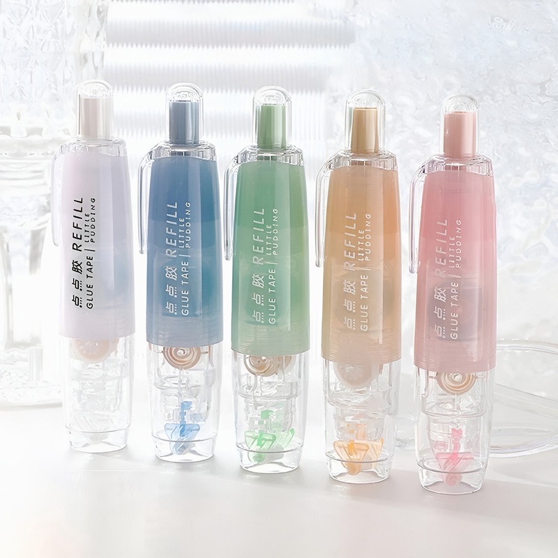 Why Youll Love It: Retractable Design Click to use, click to closeno cap, no mess! Smooth & Precise Glides effortlessly for neat, even glue lines Erasable Adhesion Made a mistake? Just rub it off and redo! Portable & Lightweight Fits perfectly in pencil cases or travel pouches 5 Vibrant Colors Match your aesthetic and make organizing fun! Tape Size 6 m long 0.6 cm wideideal for fine details and paper edges