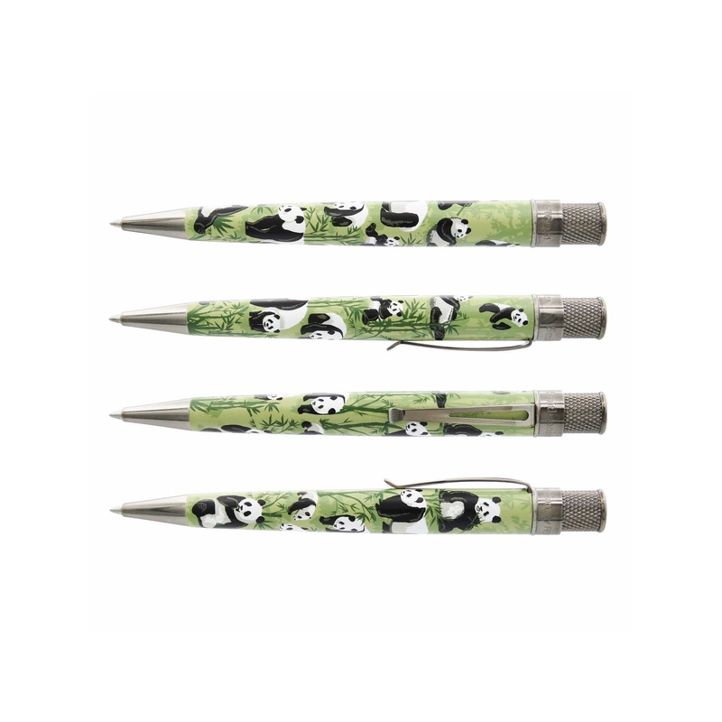 This Smithsonian collection pen by Retro51 not only writes with the dreamy rollerball refill, but it also has multiple charming pandas printed on the lightly textured barrel. Each Tornado is complete with antique silver accents, individually numbered top ring and the Smithsonian sun logo on the finial. Add The National Zoo Panda pen to your collection or wrap it up as a gift for family and friends, theyre sure to bring smiles for years to come.