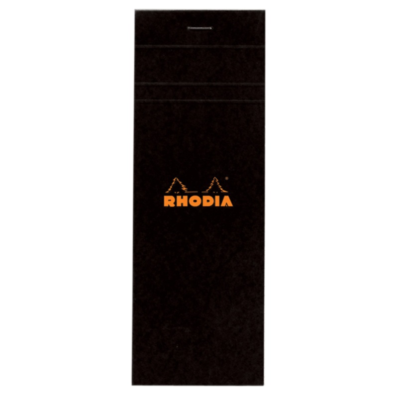 Classic Rhodia pads, with micro-perforated sheets, stiff back cover and reinforced staples.Measures 3 x 8 80 Sheets (160 Pages)White Acid-Free PaperPaper Weight: 80gCoated Black Cardboard Cover