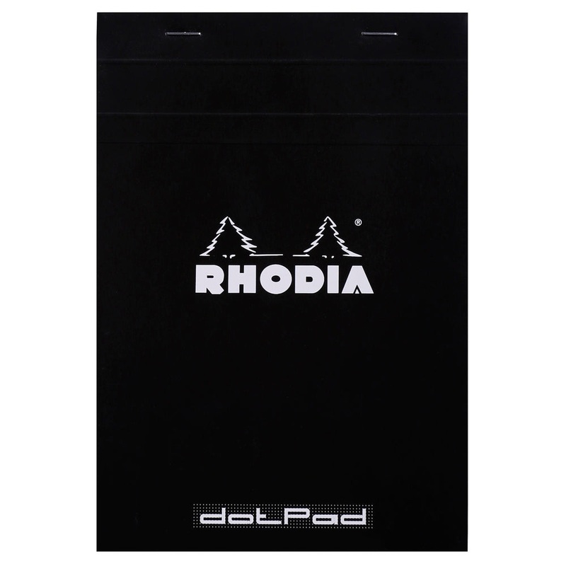 The Rhodia Basics Black Notepad (148X210mm - Dotted) 16559C is a high-quality notepad that measures 148 x 210mm (approximately 5.8 x 8.3 inches). It features a dotted ruling, which provides a subtle guide for writing or drawing without being as obtrusive a