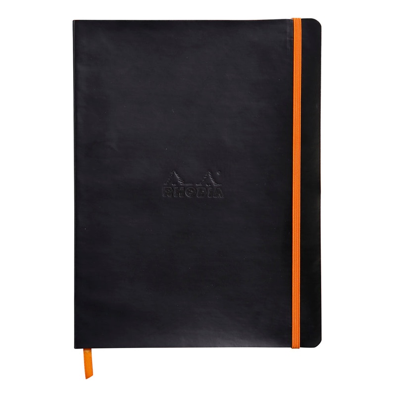 The Rhodiarama Softcover Black Notebook (190X250mm - Dotted) 117552C is a high-quality notebook made by the French paper company, Rhodia. It has a soft cover in black and measures 190mm by 250mm. The notebook features dotted paper, which is perfect for bul