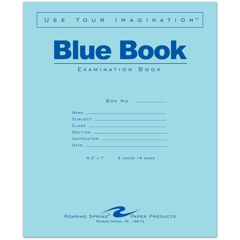 Roaring Spring Blue Book 8-sheet Exam Booklet – 8 Sheets – Stapled – Ruled Margin – 15 lb Basis Weight – 7″ x 8 1/2″ Sheet Size – White Paper – Blue Cover – Dual Sided – 1 Each