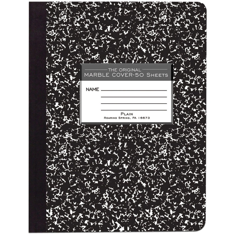 Composition book contains 50 sheets of unruled paper. Design features center-sewn and tape binding. Hard cover is a rigid with a marble design.