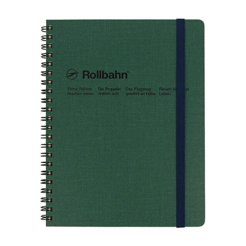 The classic Rollbahn notebook, but with the added benefit of a textured fabric cover. Comes with perforated cream graph pages that are fountain pen-friendly with five clear plastic sleeves in the back for storing any loose papers. Grommeted elastic strap k