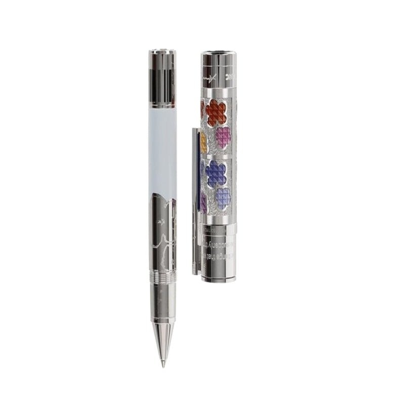 The Great Characters Edition Andy Warhol rend hommage l’un des principaux partisans du mouvement Pop Art. Avec ses uvres frappantes, Andy Warhol a bris les barrires entre le grand art et l’art commercial et a fait sensation en transformant l’ordinaire en extraordinaire. Le contraste complmentaire entre la prcieuse rsine bleu cobalt du canon et les anneaux orange troits sur le cne et l’avant refltent les variations de couleur de la srie de canettes Warhol’s Colored Campbell’s Soup de 1965, qui sont galement soigneusement travailles dans le capuchon en acier inoxydable. Un stylo roller Montblanc Great Characters Limited Edition Andy Warhol plaqu platine avec un corps en rsine prcieuse. Le capuchon prsente 4 motifs floraux aux couleurs vives et un clip en forme de raclette.