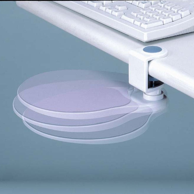 FeaturesRotary Mouse relieves back and neck tension.Rotates 360 degrees and tucks under your desktop when not in use.Cable clip keeps mouse secure.Attaches to desk surfaces up to 1 1/2" thick.DetailsRotary Mouse Pad reduces tension and movement. Rotary Mou