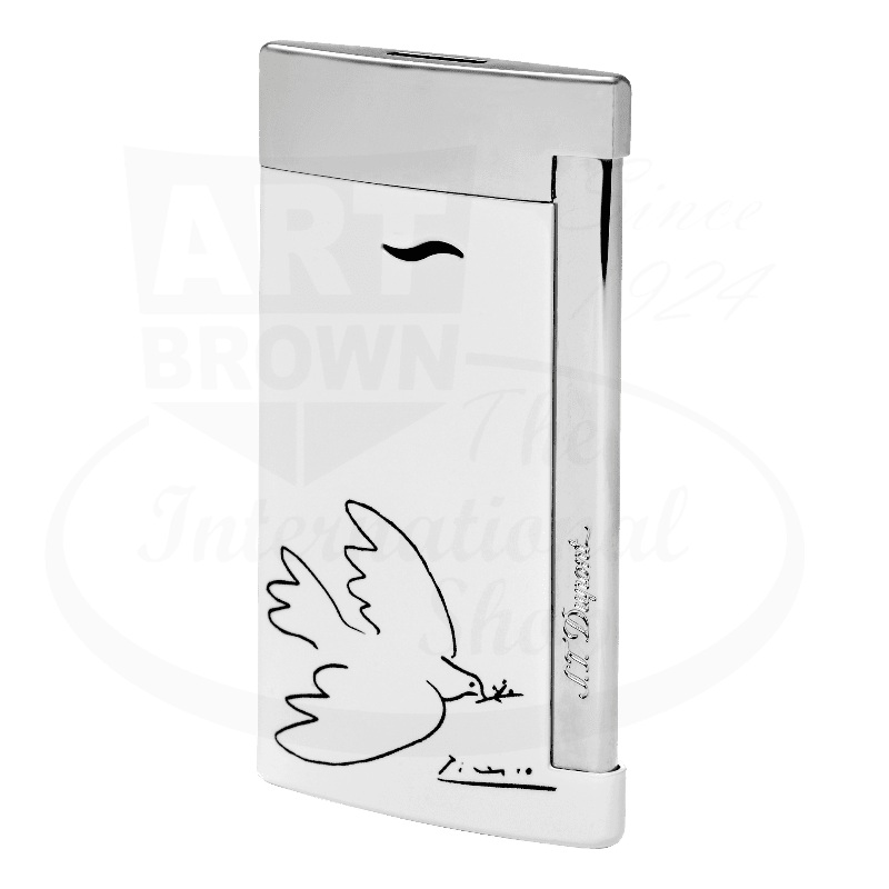 Brand new without original box. S.T. Dupont 2-year warranty included.Finish: ChromiumSlim 7 in white and chrome with Picasso dove drawing. Sold online and in person at the Art Brown International Pen Shop.