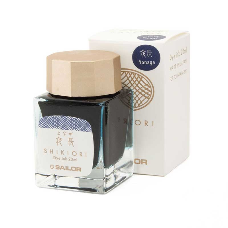 Inspired by Japans color-filled seasonal changes, each ink color of the Seasons (Shikiori Tsukuyono Minamo) collection represent the subtle evening tones of each season. Filled in an elegant 20ml bottle, each dye-based fountain pen ink is produced with the