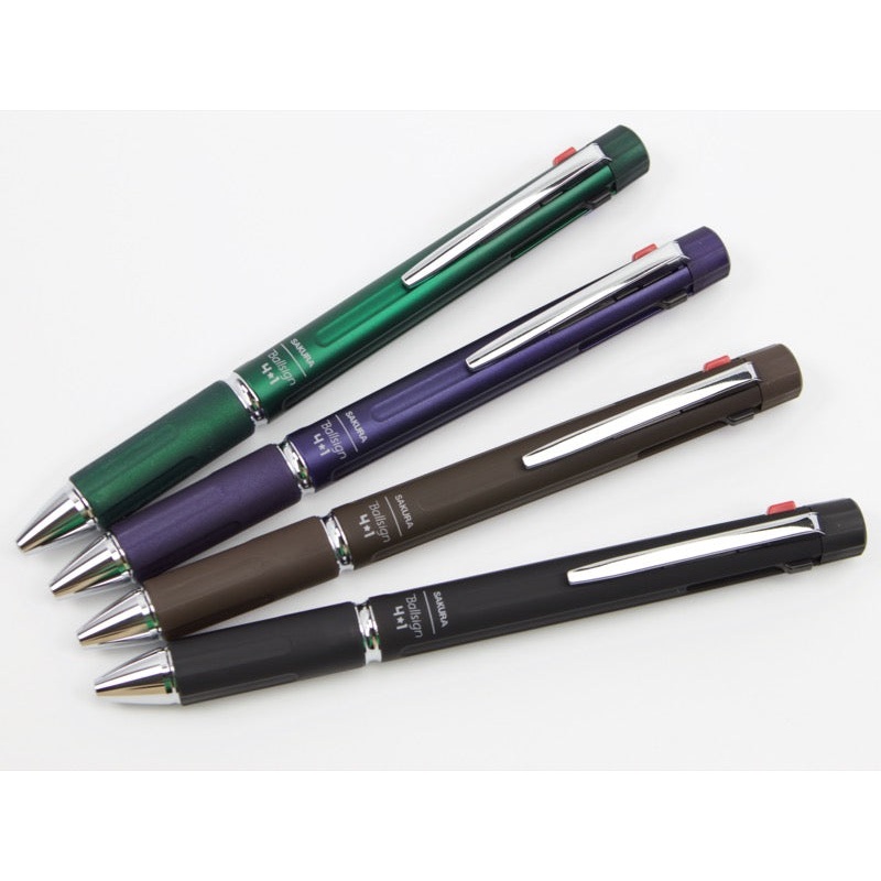 The Sakura Ballsign 4 1 combines the smooth gel ink of the Sakura Ballsign with the convenience of a multi-pen, including a mechanical pencil! This pen holds four colors of precise .4mm gel ink and a .5mm mechanical pencil.Available in four barrel colors: