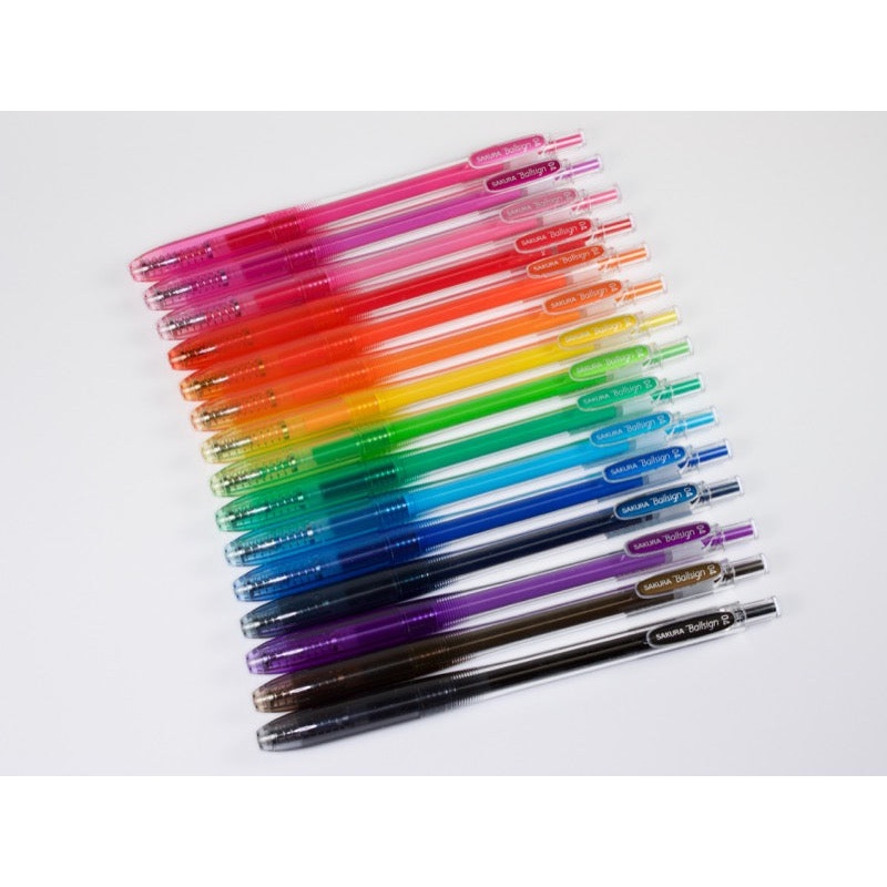 Sakura Ballsign Knock in your choice of .4 mm or .5 mm and 16 different colors!Available in the following colors: Cherry Pink, Rose Pink, Pink, Red, Red Orange, Orange, Yellow, Lime Green, Green, Aqua Blue, Blue, Blue Black, Violet, Brown Black, and Black.