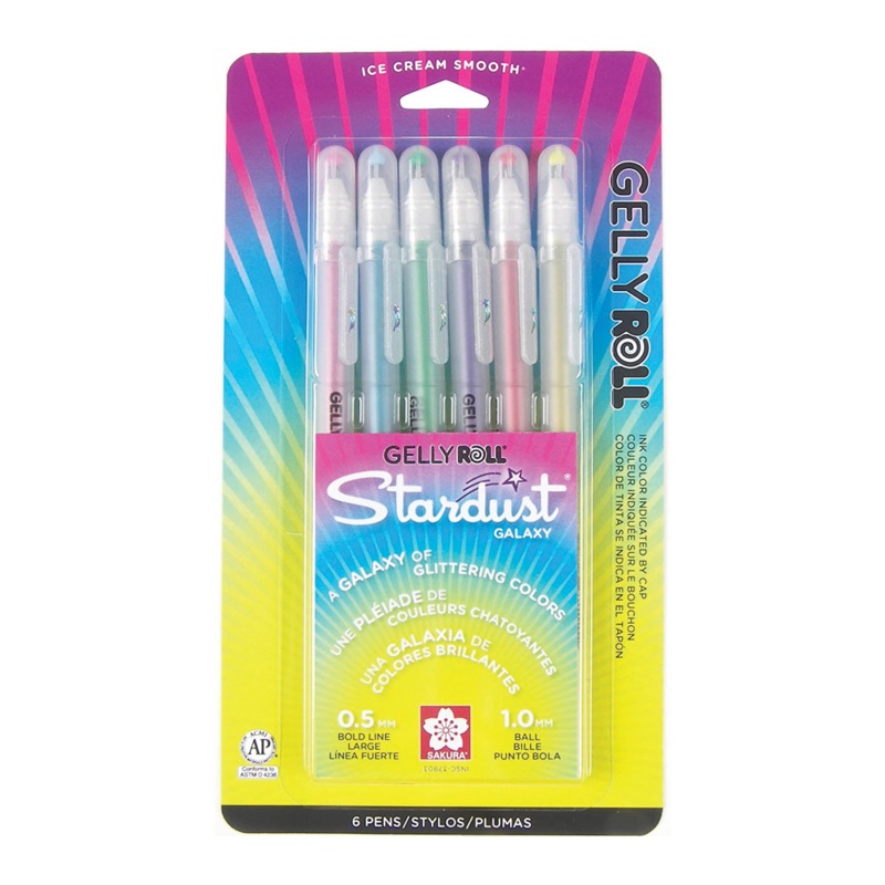 This set captures the sparkle and glitter of stars to make handwriting extra special. Archival quality inkSet of 6 colors: rose, sky, lime, purple, golden, and redIdeal for writing and designingWorks well on white and light-colored papersMeasures 1-millime