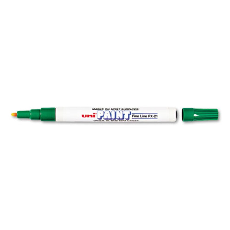Vivid, opaque oil-based paint is ideal for decorating, painting or personalizing practically any surface. Permanent and quick drying. Ink is weatherproof and fadeproof. Marker Type: Art; Color(s): Green; Tip Type: Fine; Ink Types: Non-Washable.UPC070530637