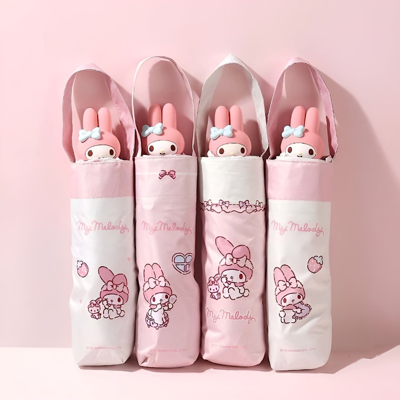 Why Youll Love It: Adorable 3D Design My Melodys sweet face pops right on top! Sun & Rain Protection A black UV-blocking inner layer shields you from the suns rays. Lightweight & Compact Perfectly sized for one person & easy to carry! Matching Carry Bag Comes with a My Melody pouch for storage on the go!
