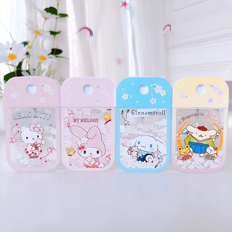 Features: Compact & Portable At just 50 ml, it’s the ideal size for on-the-go use! Twist-Off Top & Funnel Effortlessly fill the bottle with your favorite liquids. Easy-to-Use Spray Simply press the button and enjoy a fine mist! Sanrio Magic Choose from 8 adorable Sanrio characters, each with sakura flowers and their name. Fun & Functional Make your everyday moments more enchanting with a touch of cuteness!